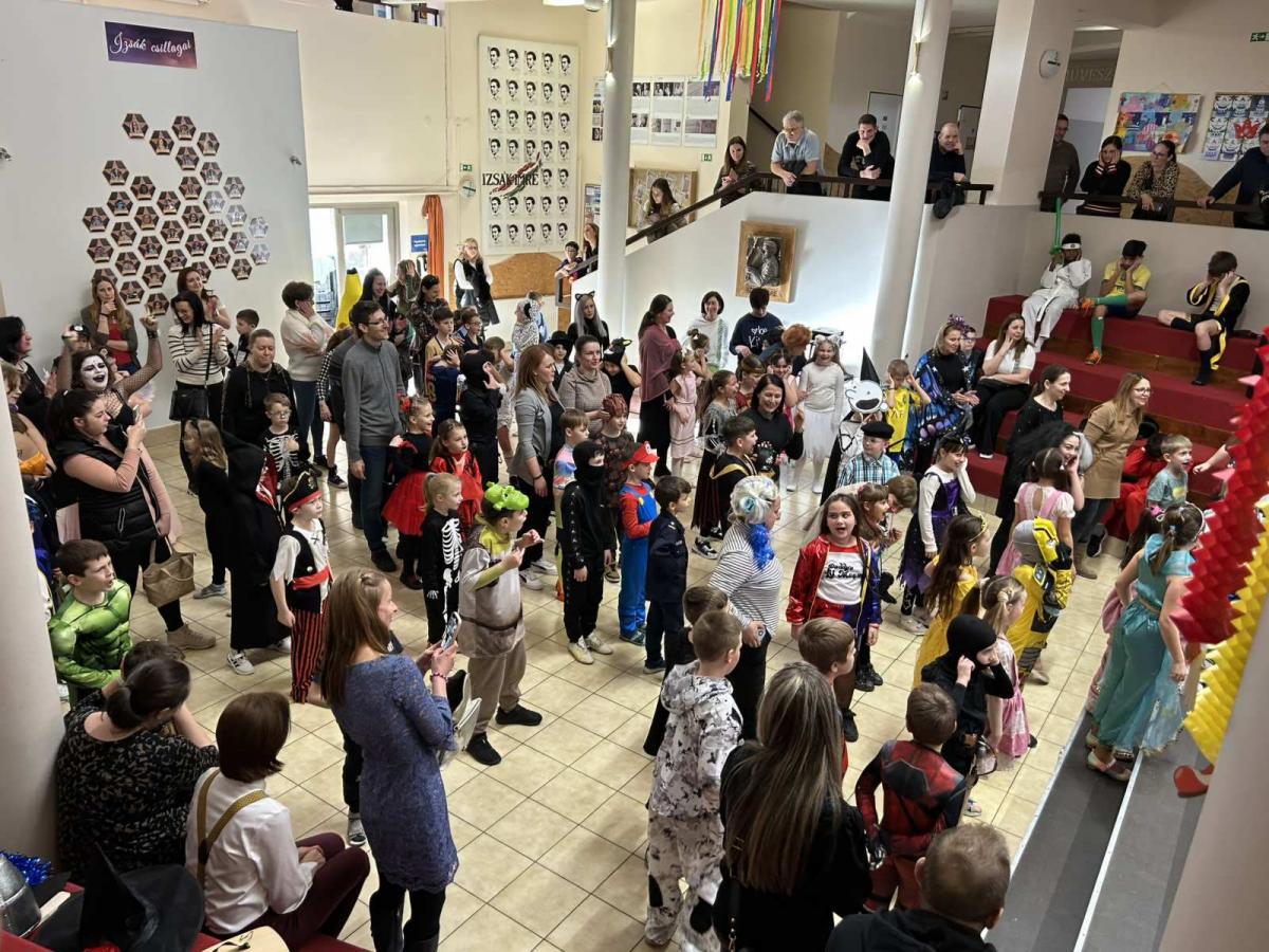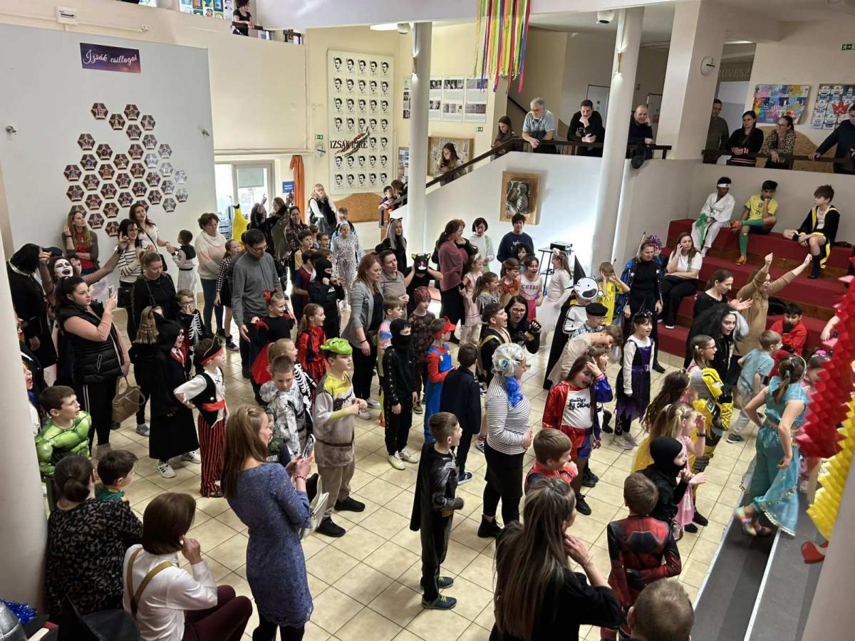 Iskolánk farsangi ünnepsége idén is fergetegesen sikerült! A programot a hagyományos jelmezes felvonulás nyitotta, ahol a gyerekek humoros és kreatív maskarákban vonultak fel. A felvonulást követően Mutyi bohóc gondoskodott a jó hangulatról: vidám műsorával, tréfáival és játékos feladataival egyaránt szórakoztatta a gyerekeket és szüleiket. A programot színesítették még: zsákbamacska, csillámtetkó és a vidám arcfestés. A farsang egyik fénypontja természetesen a tombola volt, ahol a fődíj, egy finom torta a 4. osztályosok nyertek meg nagy örömmel és ováció közepette. A vidám délutánt a Just Dance zárta, ahol a gyerekek fényekbe öltözve rophatták kedvenc dalaik ritmusára. Az Izsákban így búcsúztattuk el a telet, miközben már hívogattuk a várva várt tavaszt is.