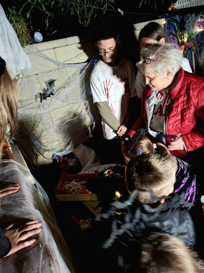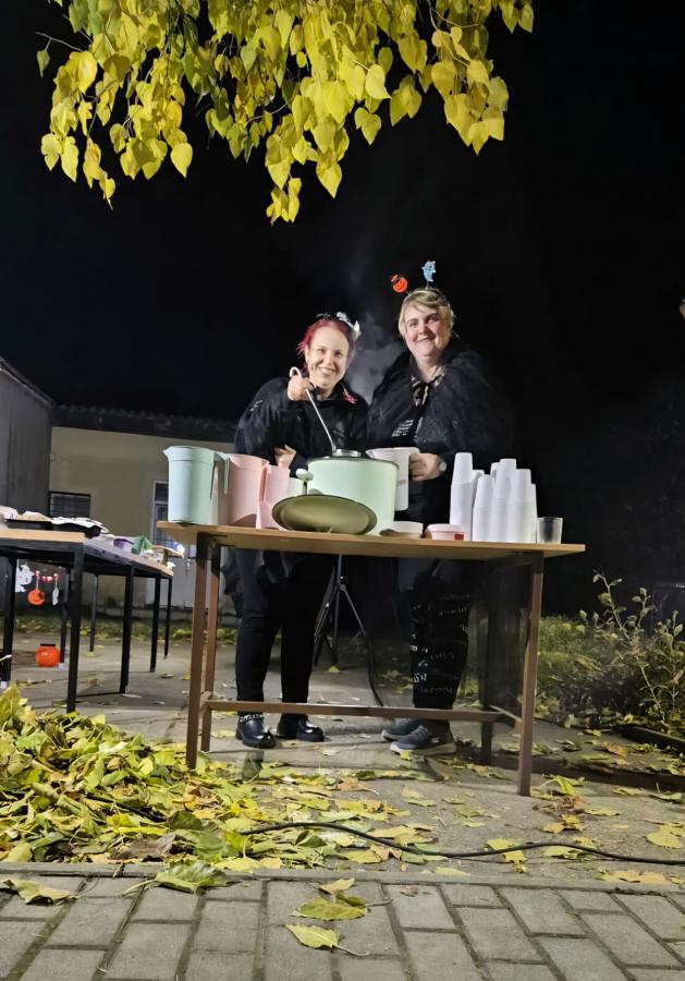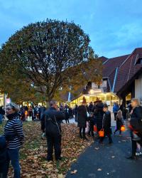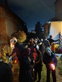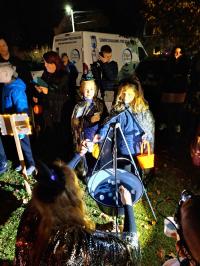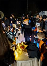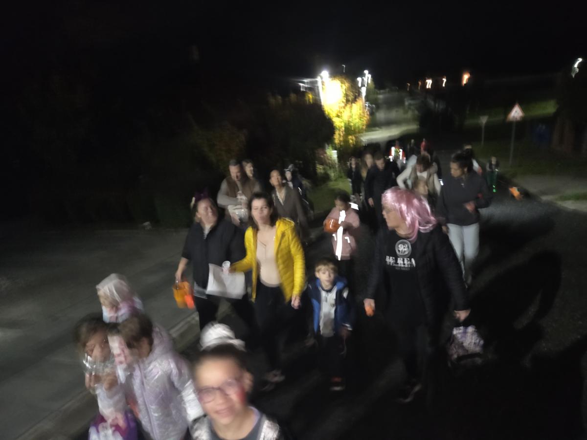 Az esős nap után az ég 17 órára kitisztult. Az utcák hamar megteltek vidám, jelmezes gyerekekkel és felnőttekkel, akik lelkesen csatlakoztak a boszorkányok által vezetett Csokit vagy csalunk sétához.
