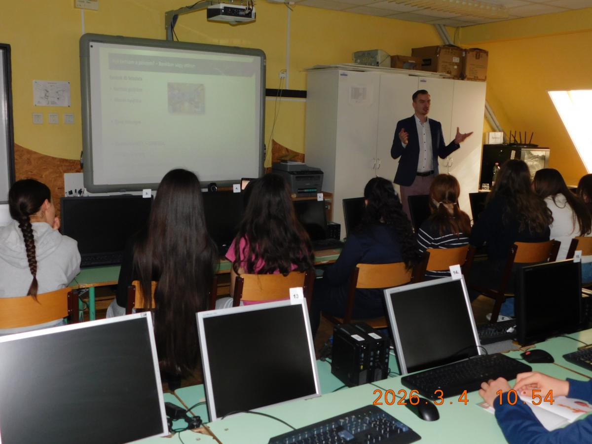 Idén a PÉNZ7 témahéthez kapcsolódva, március 4-én az OVB Vermögensberatung Kft szakembere segítségével felsőseink évfolyamonkénti bontásban mélyedhettek el a pénzügyi tudatosság rejtelmeiben. Vendégünk volt egy kiváló szakmai előadó, aki izgalmas példákon keresztül mutatta meg, hogyan bánjunk okosan a zsebpénzzel. A prezentációs anyag mentén történő interaktív bemutató érthetően ismertette a gyerekekkel a tudnivalókat. A figyelem és a jó válaszok most is kifizetődtek: a legaktívabb diákok apró ajándékokkal gazdagodtak, illetve edukációs füzet is kaptak. Célunk, hogy tanulóink már most magabiztosabban mozogjanak a pénz világában!